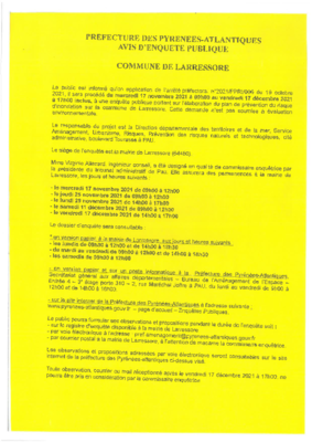 ENQUÊTE PUBLIQUE DU MERCREDI 17 NOVEMBRE 2021 à 9H AU 17 DECEMBRE 2021 à17H