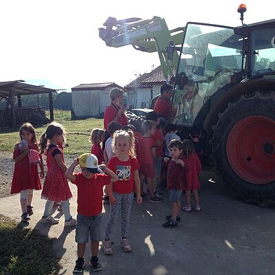 Tout de rouge vêtus, les enfants sont allés à pied à la ferme le vendredi 24 septembre 2021.
