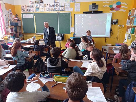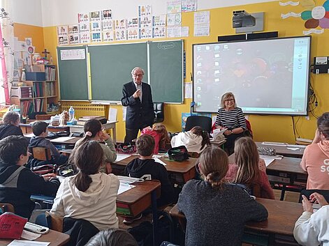 Il a captivé les élèves et la maîtresse, tant par son savoir, que par ses anecdotes. Madame de la Sablière a montré ses albums photos des ambassades, illustrant des morceaux de leur vie extraordinaire, dans des lieux éblouissants, notamment l'ambassade de France en Italie qui est un vrai palais orné de fresques murales gigantesques.