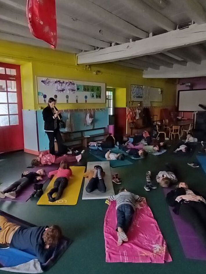 Cette année, tous les élèves de l'école participent à des séances de musicothérapie avec Mme Garcia, musicothérapeute.