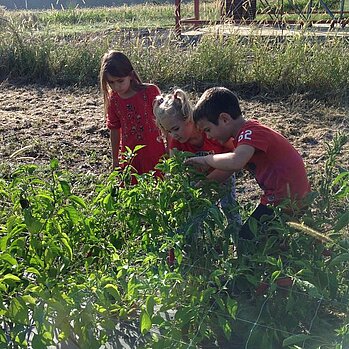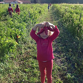 Quelques photos de la sortie des maternelles et CP qui ont visité, tout de rouge vêtus, la ferme des Olhagaray le vendredi 24 septembre 2021, pour ramasser des piments et comprendre la transformation des piments.