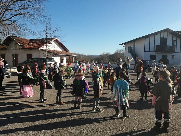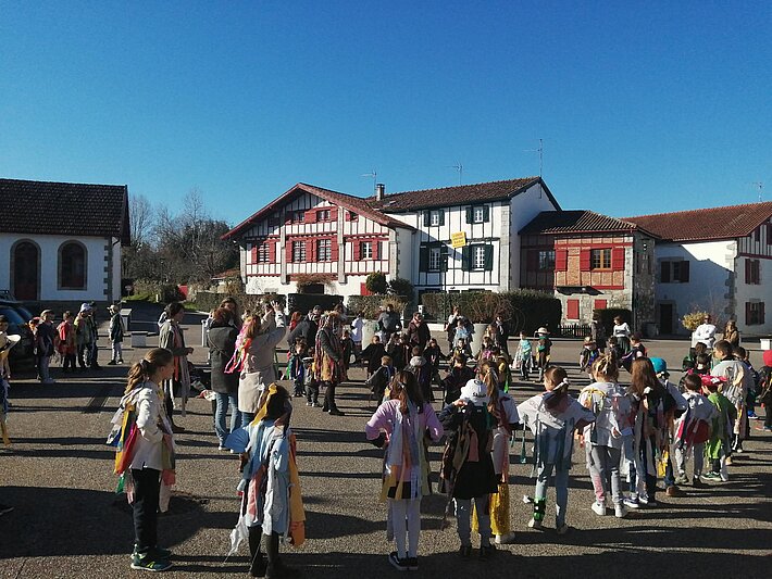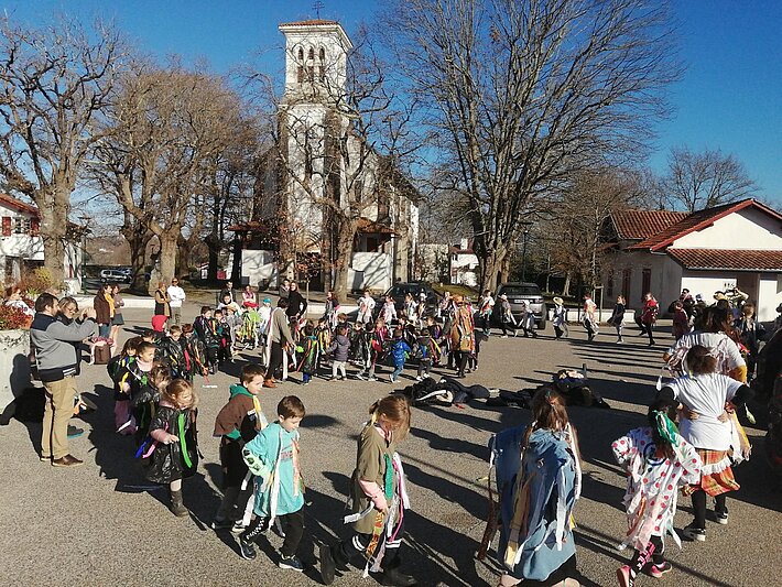Les enfants de l'école, déguisés en zirztil, fabriqués par leurs soins, ont défilé dans les rues du village vendredi 3 février 2023.