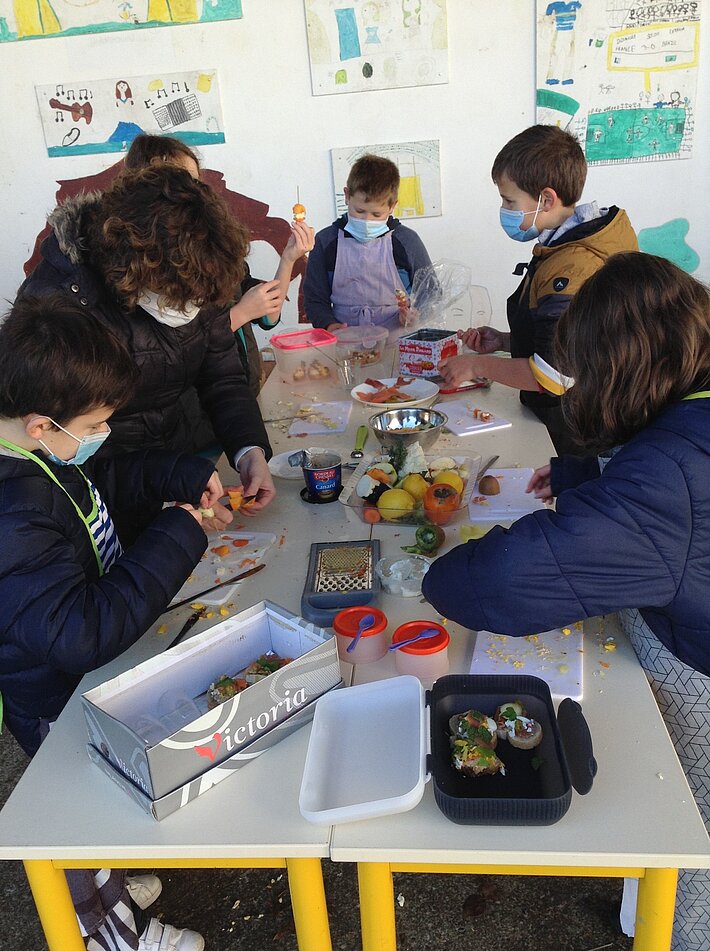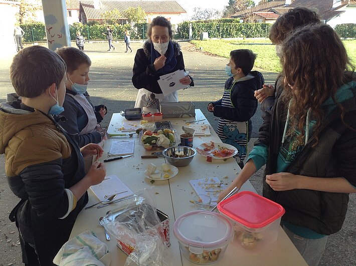 Les enfants ont pu découvrir divers aliments (association de goût, saisonnalité...) et être sensibilisés à leurs origines (circuit court, produits locaux...).